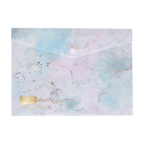 Полупрозрачная пластиковая папка на кнопке "PRIMAVERA" формата А4 для хранения, транспортировки тетрадей, канцелярских принадлежностей, разного типа документов. Папка изготовлена из гибкого и прочного полимерного материала толщиной 0,18 мм, который не царапается и хорошо сохраняет содержимые документы от механических повреждений.