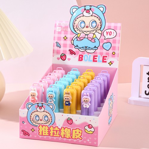 Ластик Kimira "Bolele" — это стильный и практичный аксессуар для школы, офиса или домашнего использования. Он имеет выдвижной механизм, который позволяет регулировать длину ластика и защищает его от загрязнений. Корпус ластика выполнен в прямоугольном формате и украшен объемной фигуркой монстрика Labubu. Этот ластик не только эффективно удаляет карандашные надписи, но и станет приятным дополнением к вашему пеналу. Цвет в ассортименте.