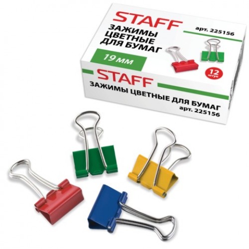 Зажим для бумаги 19мм цветной НАБОР 12шт. STAFF