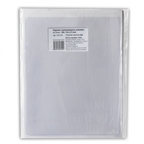 Самоклеящиеся карманы формат А5 165х215 мм. Клейкий прозрачный слой позволяет размещать карманы на любых гладких поверхностях, при переклеивании не оставляет следов. Предназначены для нанесения информации на папки, размещения объявлений, меню и т.д.