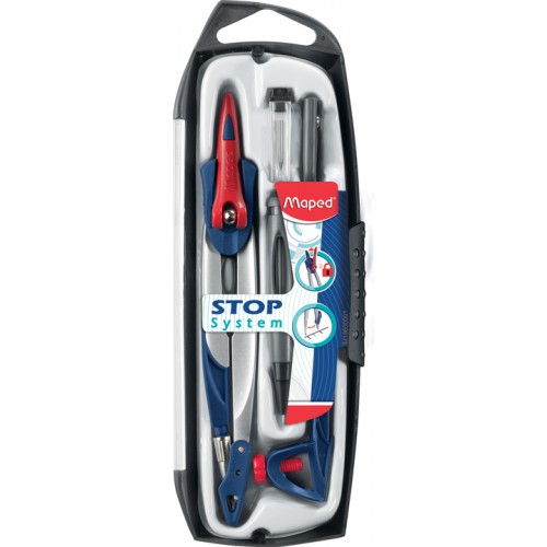 Готовальня 5 предметов MAPED 'Stop system', с циркулем, с системой фиксации