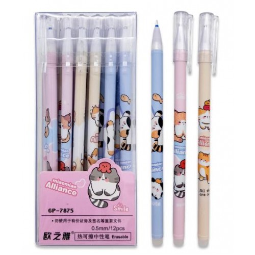 Ручка пиши-стирай гелевая 0,5мм синяя 'Котики' ассорти