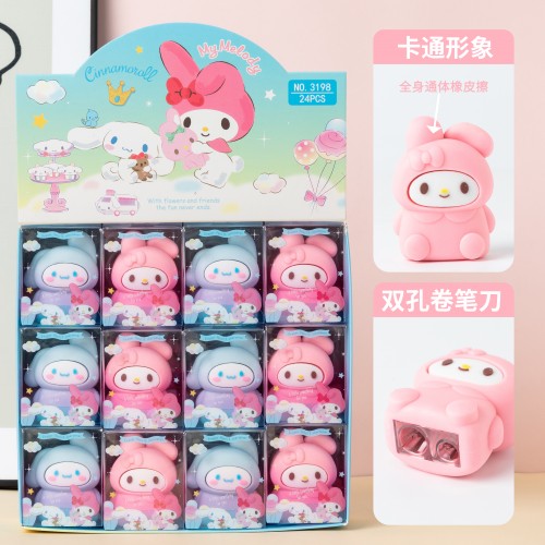 Яркая и функциональная точилка Kimira "Yuguigou" станет незаменимым аксессуаром для любого, кто любит рисовать или писать карандашами! Она выполнена в виде очаровательных персонажей - Синнаморолл и Мелоди, из приятной на ощупь резины. Два отверстия разного диаметра позволяют затачивать как стандартные, так и толстые карандаши. Точилка аккуратно упакована в прозрачную пластиковую коробочку. Дизайн в ассортименте.