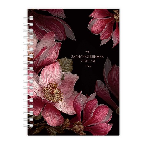 Записная книга учителя, преподавателя арт. 72878 МАГНОЛИИ НА ЧЕРНОМ / А5, 64 л., гребень по длинной стороне, полноцветная печать (4+4), Блок - белый офсет, 80 г/м?, печать в одну краску, пластиковая обложка/